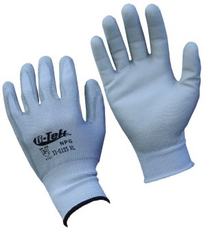 G-Tek GP General Purpose Gloves, Series: 33-G125, Coated Glove Type, M Size, Polyurethane Palm, Nylon, Gray, Seamless Knit Style, Nylon Lining, Continuous Knit Wrist Cuff, Polyurethane Coating, Palm and Fingers Coating Coverage, 9.1 in Length, Resists: Abrasion, Cut, Puncture and Tear